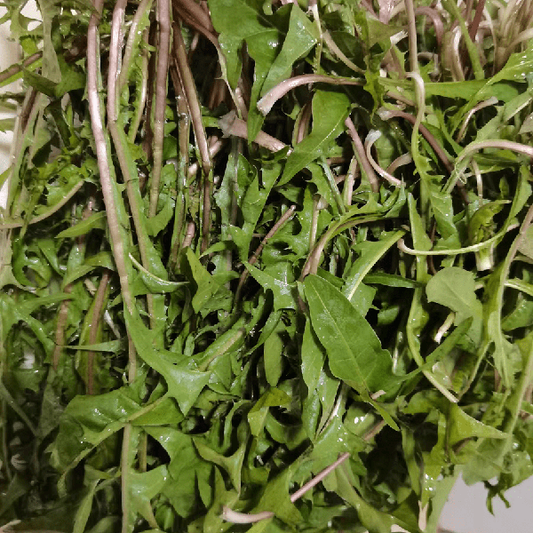 2.蒲公英清洗干净后,取叶子切碎备用。蒲公英根可以晒干了泡水喝。