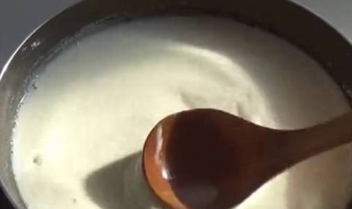 糖完全融化了,就改小火.熬到牛奶浓稠.