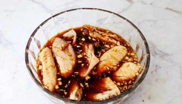 制作过程:1、鸡翅洗净控干水分或者用厨房纸擦干水分,两面各划2刀,蒜切末,姜切末