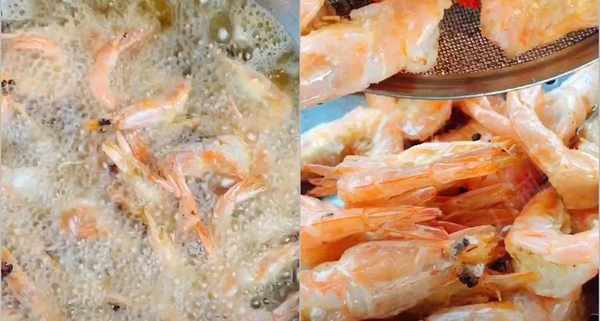 干锅香辣虾烹饪步骤一:起锅倒油,油温大概五层热将下倒入锅中炸,炸至通红捞出控油备用。