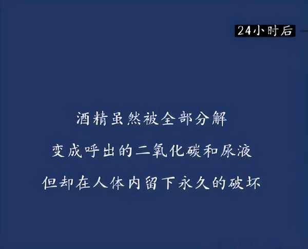 结语:酒精对于身体的伤害是不可逆的,虽然我们的肝脏可以进行分解,但是酒精在我们身体内走一遭,已经留下了伤害的痕迹,希望大家都能够好好珍爱生命,真正意识到饮酒后的危害,及早戒酒。