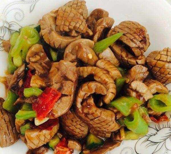 火爆腰花:猪腰子洗净切花刀。用花生油,酱油和米酒腌制备用,大葱切小段,姜片切丁。红辣椒切小段。大蒜去皮切碎。豆豉洗干净备用。酱油蚝油米酒和鸡精混合成酱汁备用,热锅倒适量油大火滑炒步骤一腌制好的腰花。都变色了就盛出。下大蒜姜和豆豉爆香,下红辣椒翻炒。再下腰花。最后下大葱段。淋下酱汁。大火收汁即可。