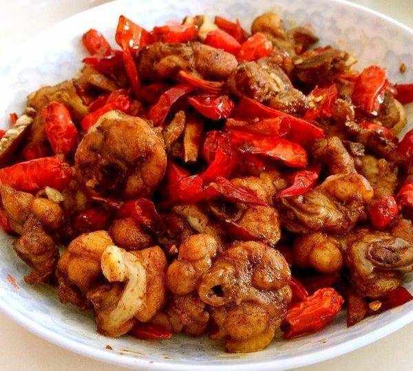 辣子鸡:鸡腿洗干净剁块,用盐、料酒、生粉腌制半小时。最好加入黑胡椒碎腌制,味道会更好哟,油烧热,大火炸鸡块至金黄,捞出沥干,热锅冷油,小火煸香蒜瓣和姜丝,煸香后,加入花椒和辣椒翻炒出味,倒入炸好的鸡块继续翻炒,翻炒入味之后,就可以出锅了,出锅前加上葱段,撒上芝麻粒即可,一盘美味的辣子鸡就这么大功告成了。