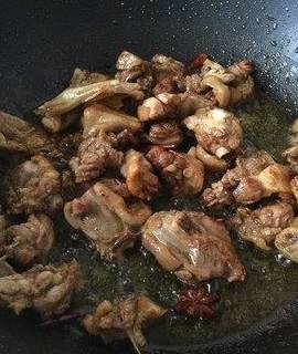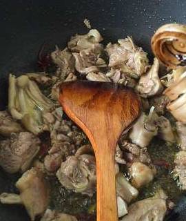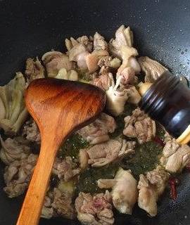炒到鸭肉轻微脱水时放入料酒,稍微多放点