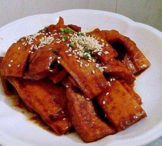 永远吃不腻的几道家常菜,到了冬天每周都要吃两三顿,每回都光盘,做法简单,喜欢的跟紧我的步伐,一起来学习吧!蜜汁豆干:将豆腐干切成小块,放平底锅中煎至两面金黄,锅中留一点油,放入白糖中火炒至冒泡颜色呈焦糖色,下豆腐干翻炒,放入一杯开水,倒入少许老抽,加少许盐,再放入一个八角和辣椒煮开后转小火继续煮,大火收汁并翻拌均匀,撒上白芝麻即可。
