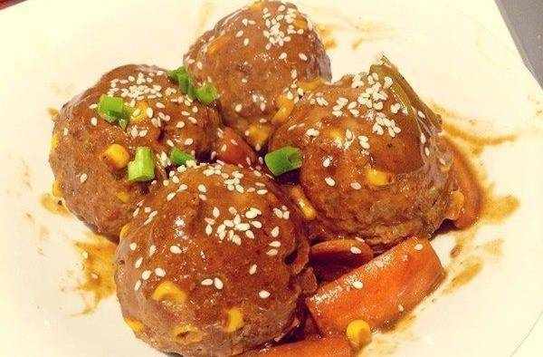 红烧狮子头:绞肉、莲藕、葱、姜加入调料1拌匀后,摔打到有粘性,用手挤成小圆球备用,油锅热至180度,把步骤一做好的肉丸子放入,定型后转中火炸熟后捞出沥干油分备用,把胡萝卜丝放到锅子里炒,加入炸好的狮子头。了,放水和配料,盖上锅盖焖煮到剩下三分之一汤汁时候,把狮子头捞出,摆放在盘子。剩下的汤汁加入淀粉水勾芡,再淋到狮子头上即可。