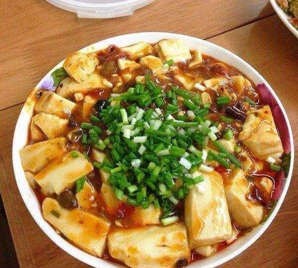 麻辣豆腐:豆腐切成2厘米大小的方块,豆腐切块后,用沸腾的淡盐水焯水,炒锅烧热放适量油,下绞肉,姜末、蒜末,辣豆瓣酱炒散,炒香,倒入高汤或水,放入豆腐、酱油、鸡精、料酒,糖以小火煮至汤汁开始浓稠时,用淀粉水勾芡,淋入麻油,撒上葱花,以花椒粉增加香味即可。