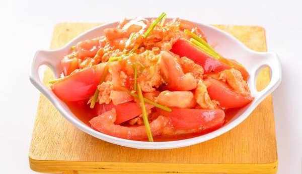 西红柿250克,鸡蛋3个,猪油60克,水淀粉10克,葱姜末、精盐、味精各适量。