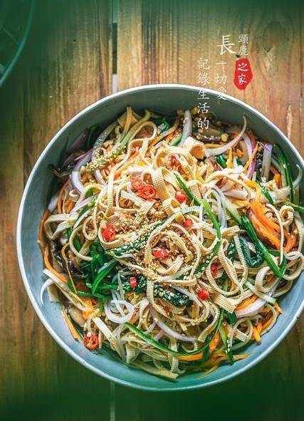 1、将豆腐皮用沸水泡软,取出沥干水分,切成丝放入盘内;葱洗净切成末;姜洗净切成末。