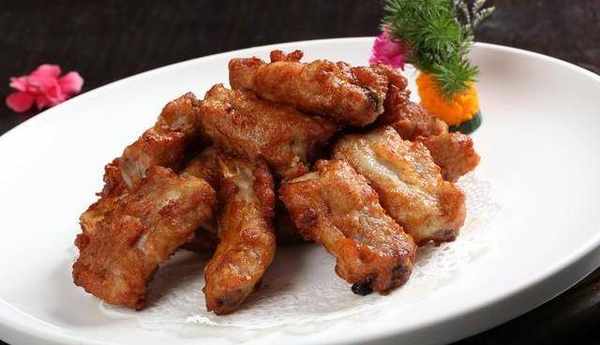 3.炒锅置火上,加适量油烧至五成热,将排骨取出,抹去表面菜末,下锅中炸熟,捞出沥油,装盘即可。