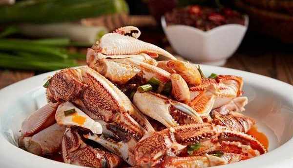 3.原锅中留少许油,下干辣椒段炒香,加入蚝油、白糖和米酒,放入蟹腿肉,拌炒后熄火,拌入花生即成。