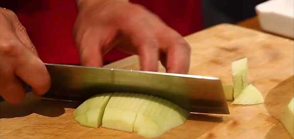 1、土豆去皮冼净切成滚刀块,茄子去皮打上花刀切成梳子块,便于成熟,青红椒切块。