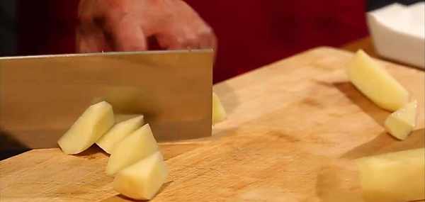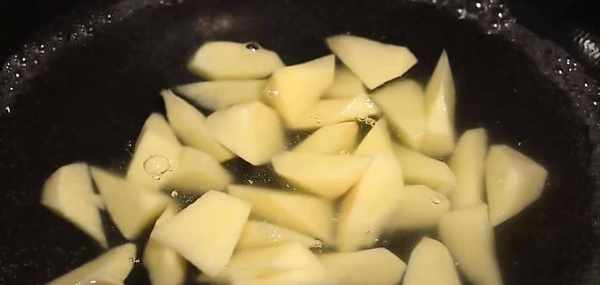 3、起锅烧水,水开后放入土豆煮到断生,需要煮5分钟左右。