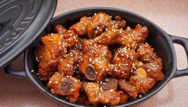高升排骨:锅子烧开水,将小排骨放入,煮30分钟,捞出,放入热水中,清洗干净,锅子烧热,倒油,放入葱、姜、八角,煸炒出香味,放入排骨,煸炒,倒入料汁。(料汁以固定衡量标准,依次叠加,水可以多加一份两份)中火,盖盖子,焖煮,焖煮至汤汁几乎收干,加入少许熟芝麻点缀,出锅装盘即可。