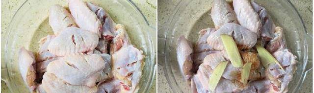 第一步:买回来的鸡翅清洗干净,然后在上面划两刀,两面都划,这样调料的味道才能更好的被鸡翅吸收。放点食用盐,料酒,姜片抓匀腌制20分钟。