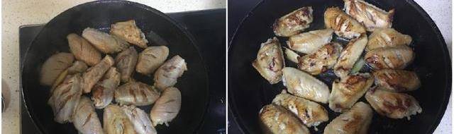 第二步:平底锅上少刷点油,薄薄一层就够了,然后把腌制好的鸡肉放进锅中,小火慢煎,煎至两的颜色微焦,发黄的状态就可以了。