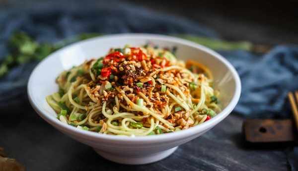 四川凉面虽用料普通,但制作及调味精细,佐以鲜嫩蔬菜,食之清凉滑润,爽口不腻,咸甜酸辣俱全,极富地方风味。