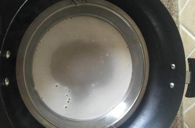 3、在里面倒入适量的面糊,放入烧开水的锅里,盖上锅盖。