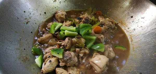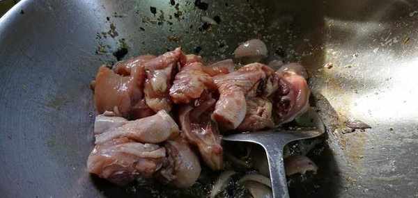3)加入鸡块炒至转色。