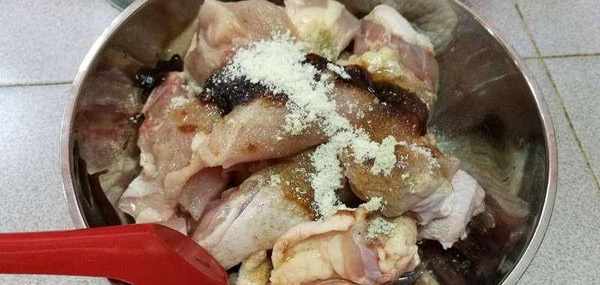 1)把鸡块腌制约1个小时。