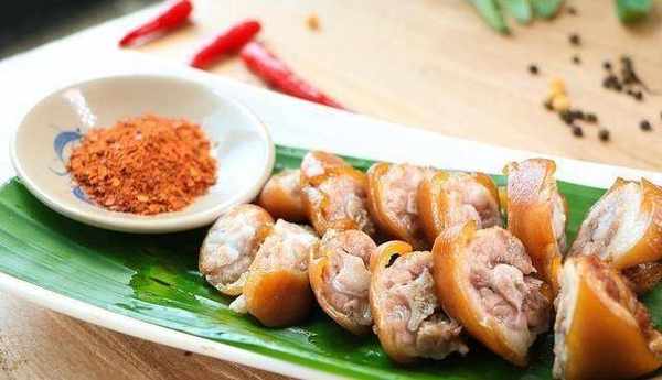 3、食用时,将猪尾剁断,淋上少许卤汁即可。