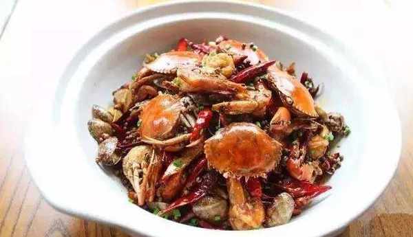 4.锅中放少许油,放入姜,大蒜子,香辣酱,干整椒炒香,然后倒入花甲,大明虾,蟹,喷料酒煸炒,然后加入高汤,调味,焖至2-3分钟,芥末用生抽稀释,加入锅中,即可出锅。