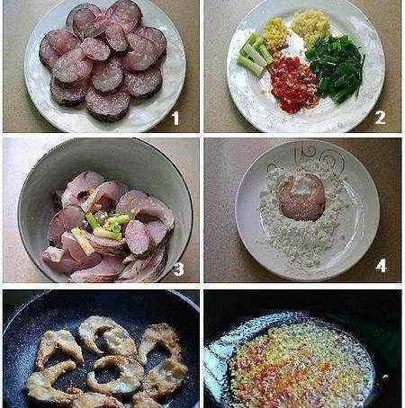 ①将鱼去头,剖腹(可让店家代劳),去掉肚子里的黑膜和内脏,洗净后横切成段。