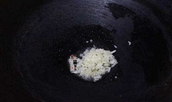 6.炒菜锅倒入两勺油,小火把蒜末爆香。
