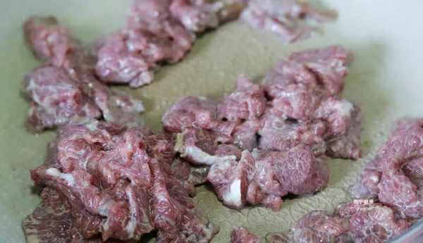 3、起锅,往锅里加入多一些的食用油,等油温升高之后,就可以把牛肉放入锅中爆炒。