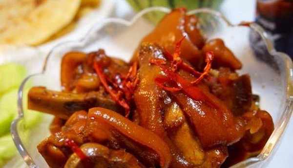 猪蹄中含有丰富的胶原蛋白,常吃有美容养颜的作用。往猪蹄里加点小拌料,再用锅子慢慢的熬制,味道真的香气四溢,吃起来有嚼劲。