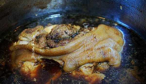 继续保持大火煮30分钟左右,然后关火,让肘子在锅里焖2小时左右,使其充分入味。