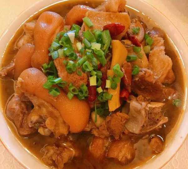 猪蹄又叫猪脚、猪手,具有和气血、润肌肤、可美容的功效,爰美的女性可多食用,猪蹄中含有丰富的胶原蛋白,脂肪含量也比肥肉低,且有壮腰补膝和通乳之功效,可用于肾虚所致的腰膝酸软和产妇产后缺少乳汁之症,在烹调过程中,它所含胶原蛋白可转化成明胶,能增强细胞生理代谢功能,使细胞保持湿润状态,防止皮肤过早褶皱,延缓皮肤的衰老。