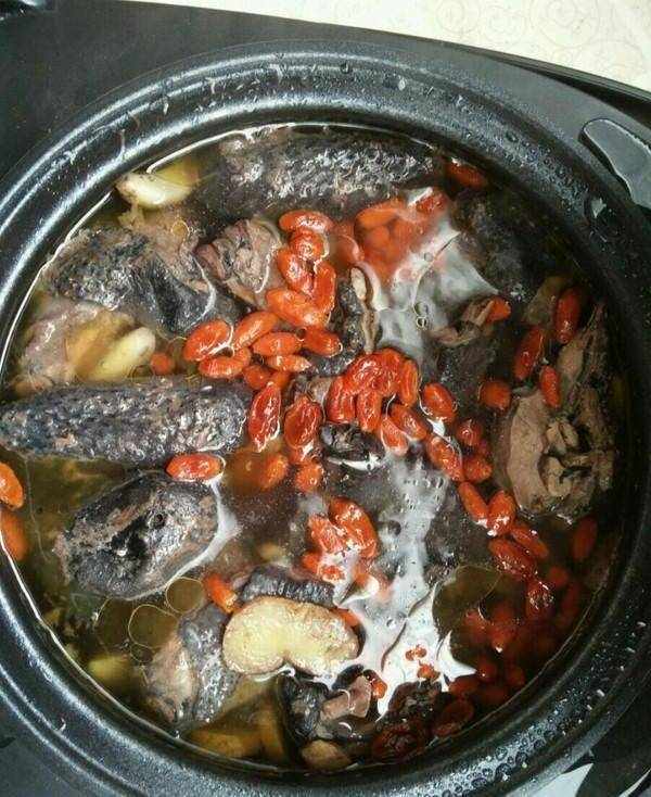8.调好功能,煲一个小时后放入枸杞,继续煲汤,再一个小时后加入适量盐就可以出锅啦!!!!在半个小时左右就满屋飘香啊!