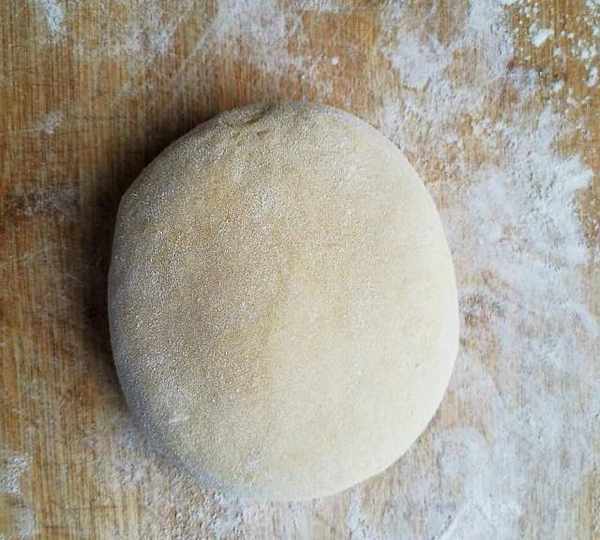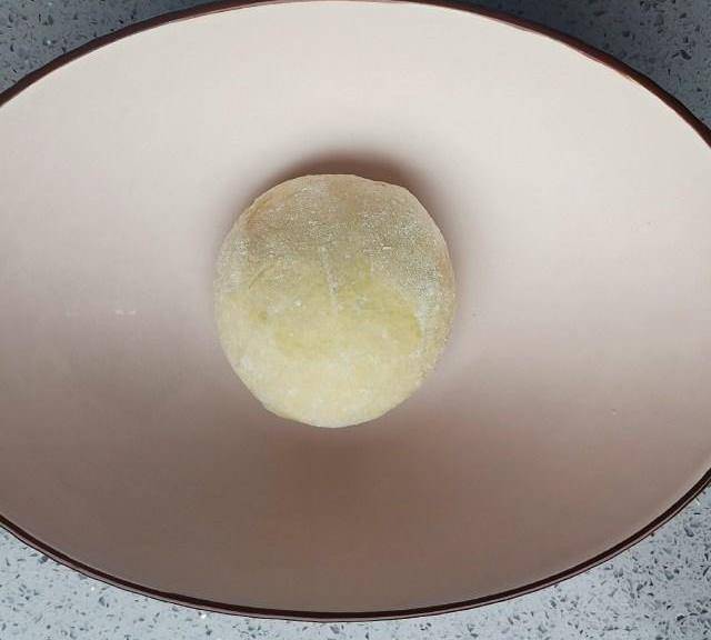 第5步、醒发好的面多揉几遍团成圆压扁。