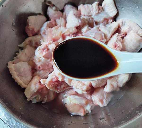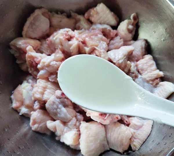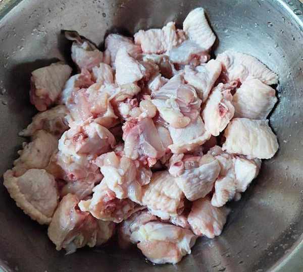 第1步、鸡肉剁2-3厘米大小的块,洗干净滤干水。