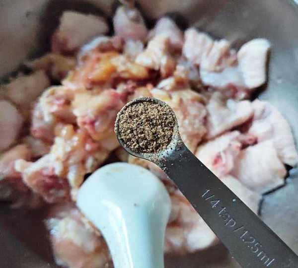第5步、1/4茶匙的五香粉。然后拌匀,腌制2小时。