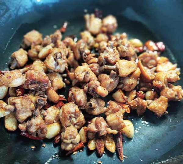 1、鸡肉不要剁太小了,一炸收缩就太小了,也不要太大块,不容易入味。鸡肉要这个时候就腌入味,腌的时间久一点更入味,后面要干炸快炒不容易入味。2、大蒜和干辣椒可以多放一些,我是家里正好没多少了,所以放得少。3、鸡肉炸的干焦程度随自己喜好。炸得干一点香,但我妈牙不好咬不动,我是炸得微焦。