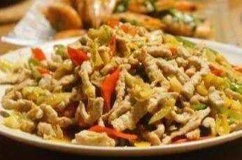 1、瘦肉切丝,酸萝卜切丝,莴笋切丝,泡椒和泡姜切丝,蒜切片。