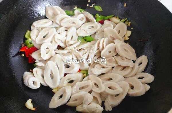 1.食材准备:把水面筋洗净切片,把青辣椒和红辣椒洗净切片,大葱切葱花,蒜瓣切片。