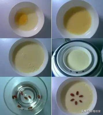 配料:牛奶,鸡蛋1个。白砂糖适量,枸杞适量。