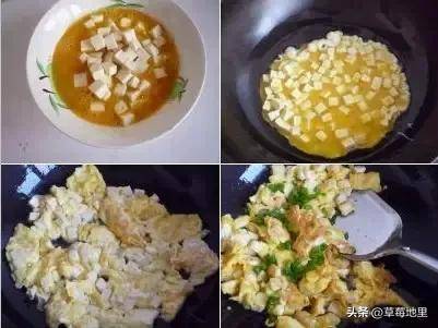 配料:豆腐一块,鸡蛋3个。盐,葱。