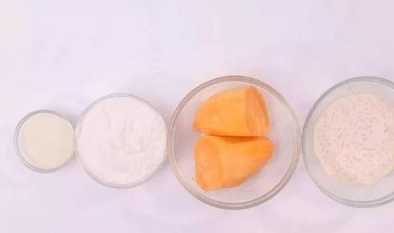 香芋150G、地瓜250G、糯米粉40G、白糖30G、油适量