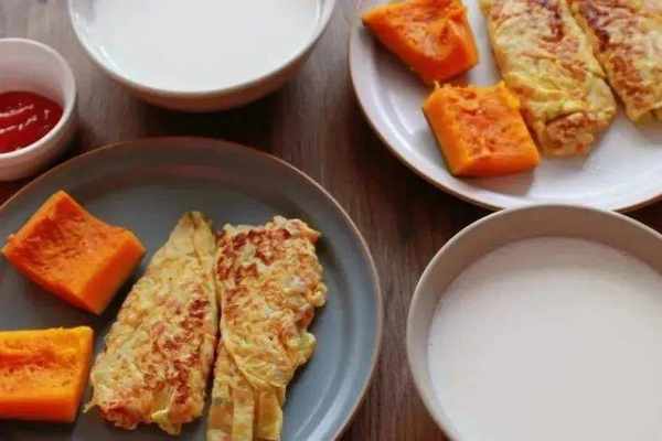 第二天:中式欧姆蛋、蒸南瓜、燕麦牛奶