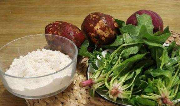 食材:红薯、紫薯、菠菜、面粉、水、白糖