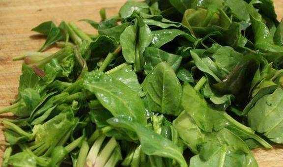 菠菜切除根部后,放入料理机中,倒入适量的水,然后用料理机搅成菠菜汁。