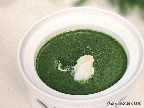 2.素菜焯水,捞出后放入料理搅拌机内,加入浓汤,搅拌成泥;鸡蛋取鸡蛋清,备用。