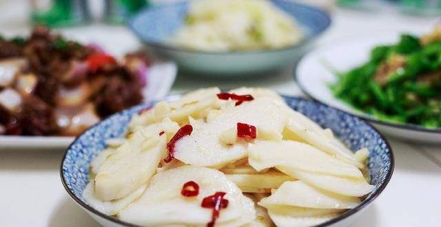食材:山药1根、油适量、白醋1茶匙、白酱油1茶匙、辣椒3个,大蒜适量。