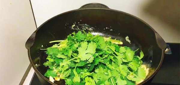 食材准备:香菜、鸡蛋、食盐、黑胡椒粉、辣椒酱、花生油