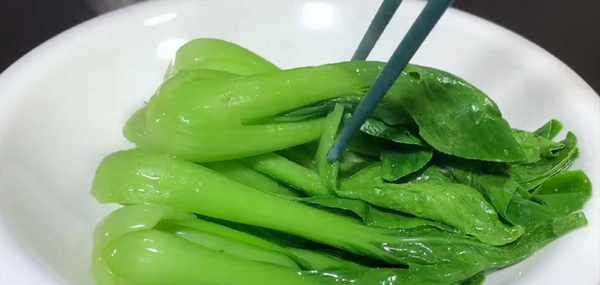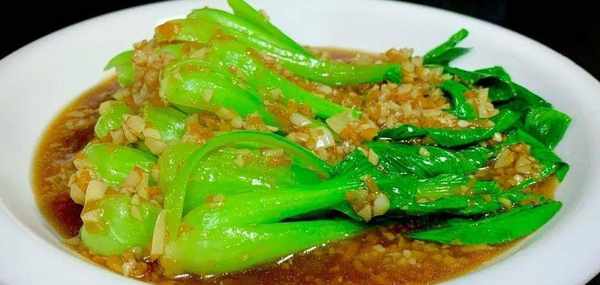 10、最后将料汁淋到上海青上,清淡不油腻,适合老人和小孩子多吃。