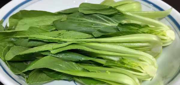 7、焯好水之后,把上海青摆入盘中,把它摆放整齐,这样才更加好看。